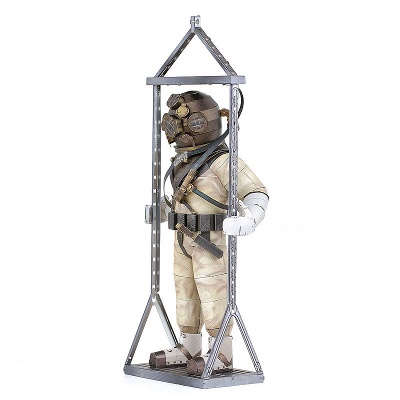 Este modelo armable en metal te transporta a la era heroica de la exploración submarina, cuando los trajes de buceo eran enormes, mecánicos y llenos de encanto.