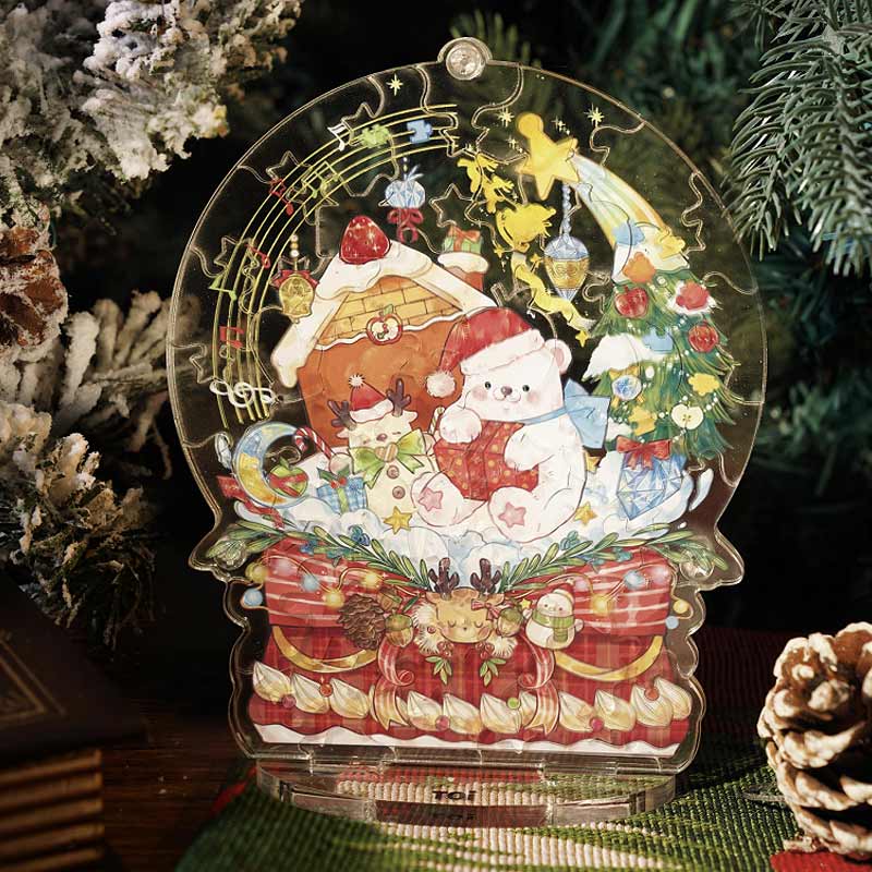 A diferencia del cartón, sus 45 piezas irregulares están fabricadas en acrílico premium. Este material no solo garantiza una durabilidad superior, sino que le otorga un acabado nítido y brillante, haciendo que la imagen parezca flotar bajo una cúpula de cristal. El oso polar con gorro de Santa, los regalos y el pequeño árbol se convierten en un vívido fragmento de la Navidad.