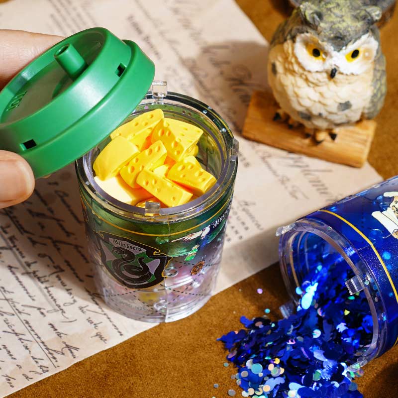 Este producto innovador fusiona el placer de armar un puzzle 3D con la diversión del coleccionismo temático. La Milk Tea Cup es una serie de accesorios/llaveros armables que rinden homenaje a las Cuatro Casas de Hogwarts: Gryffindor (Rojo), Slytherin (Verde), Ravenclaw (Azul) y Hufflepuff (Amarillo).